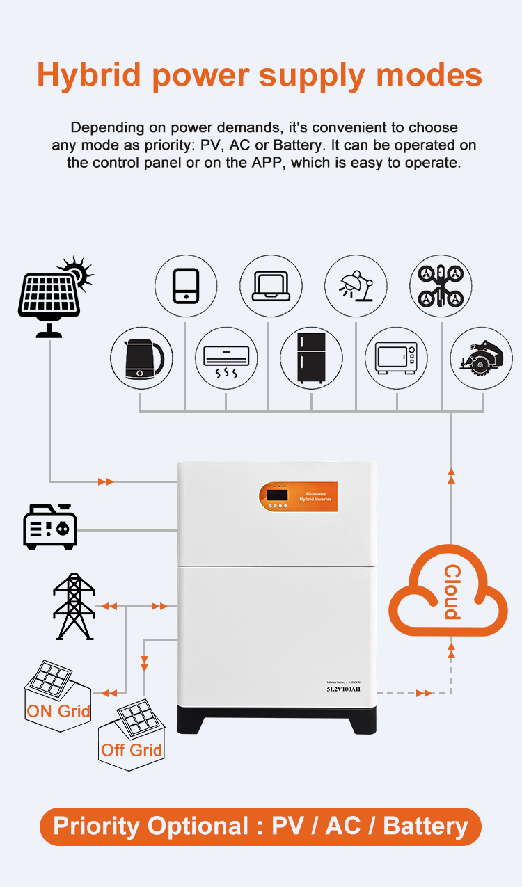 ESS todo en uno apilado verticalmente con inversor de 5 kW & 10Batería kWh LiFePO4 para el hogar