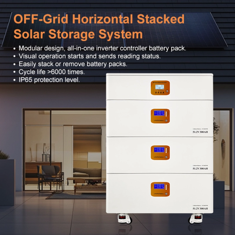 Our All-in-One Energy Storage System innovatively integrates an 11kW high-performance inverter with a long-lasting 51.2V 300Ah battery, stacking them vertically within a single compact unit. This is far more than just a piece of equipment; it is a fully integrated energy hub that provides your home with complete “generation, storage, consumption, and backup” capabilities. It completely eliminates the installation and wiring complexities associated with traditional split systems.