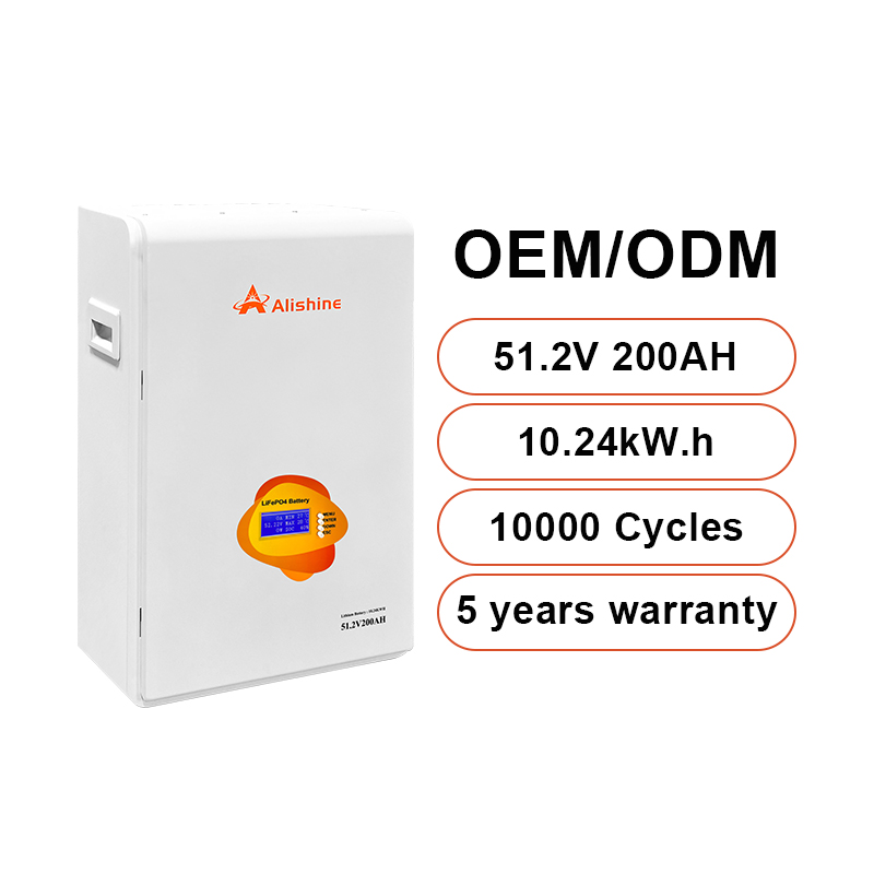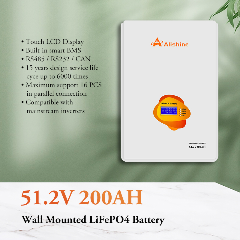 Wall mounted 51.2V 200Ah Deep Cycle LiFePO4 Battery for Solar System Backup